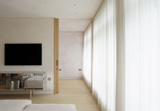 Silent Glissはbont/designと協力し、このビジョンの実現を支援するためにカーテンレールとカーテンを提供しました。薄手の生地PolyflaxとSomeoを使用した繊細で控えめなスイスプリーツカーテンは、特許取得済みの独自の2コンポーネントサイレントグライダーを使用してカーテントラック SG 6465に取り付けられ、シンプルで夢のようなインテリアに柔らかな優雅さを添えました。