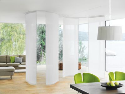 デザインの可能性にあふれた手引き式のパネルフレックスシステムを楽しんでください。幅広い部屋のレイアウトに適しています。独特のフレキシブルなキャリアは折り曲がり、急角度でもパネルはスムーズで静かに動き、ウィンドウから離して重ねることができます。ルームディバイダ―としてのフレックスパネルを使えば、独特な部屋空間づくりができます。オプションのロッドを使えば、ファブリックへに直接触れずに操作ができます。